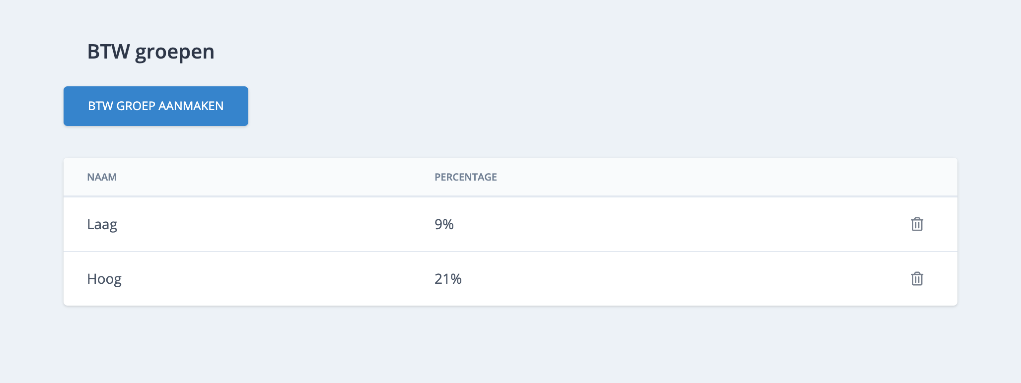 BTW groepen aanmaken