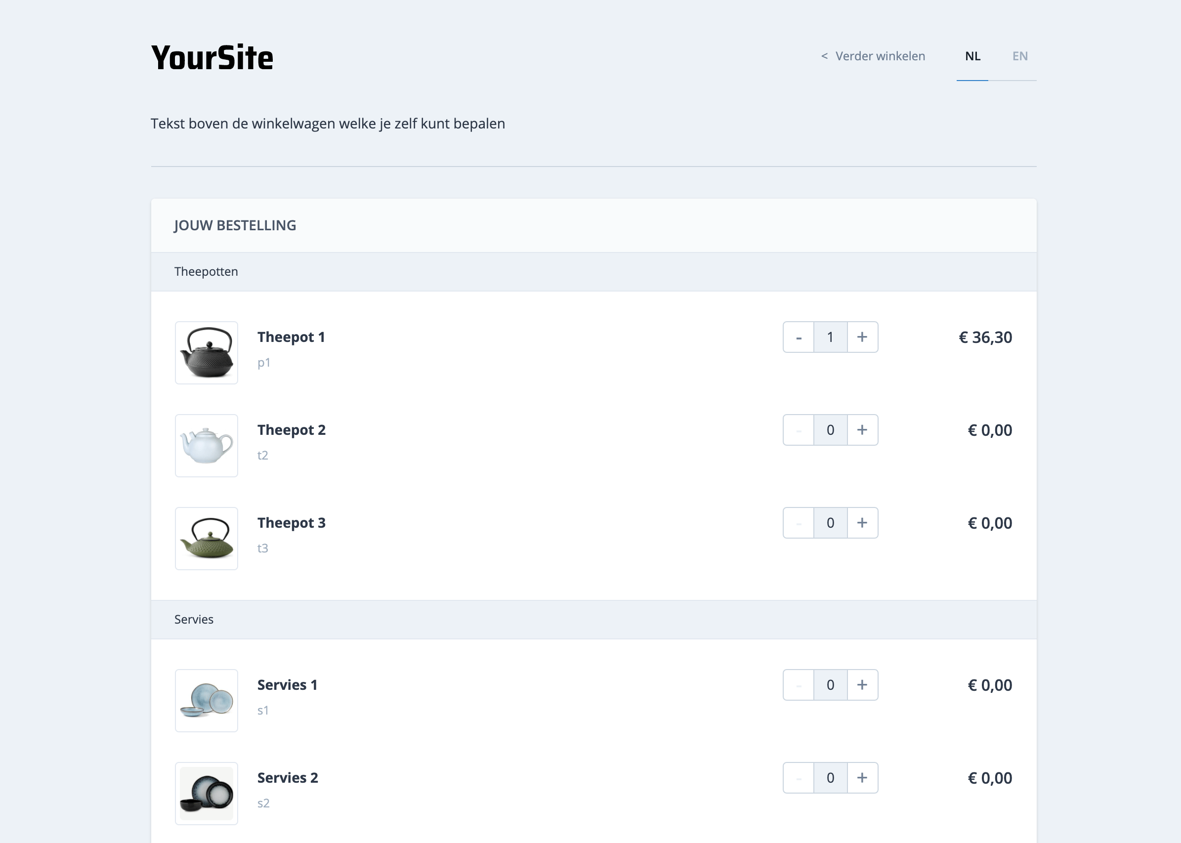 Wanneer je kiest voor de bestellijstweergave dan kun je geen gebruik maken van de standalone winkelwagen. Kopers kunnen nog wel op een productlink klikken, maar komen dan in de bestellijstweergave waarbij aan het geselecteerde product +1 bestelling is toegevoegd.